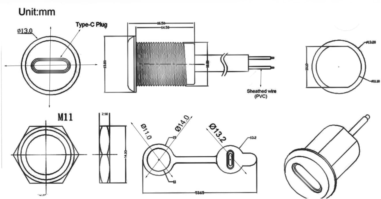 Die Buchse kann in eine 11mm-Bohrung eingesetzt und mit einer Mutter befestigt werden.